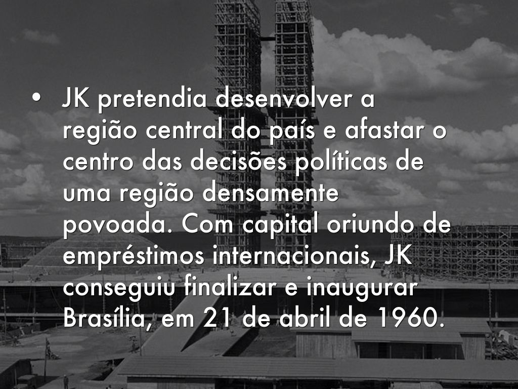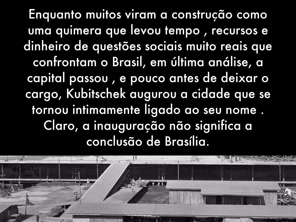Enquanto muitos viram a construção como uma quimera que levou tempo , recursos e dinheiro de questões sociais muito reais que confrontam o Brasil, em última análise, a capital passou , e pouco antes de deixar o cargo, Kubitschek augurou a cidade que se tornou intimamente ligado ao seu nome . Claro, a inauguração não significa a conclusão de Brasília.