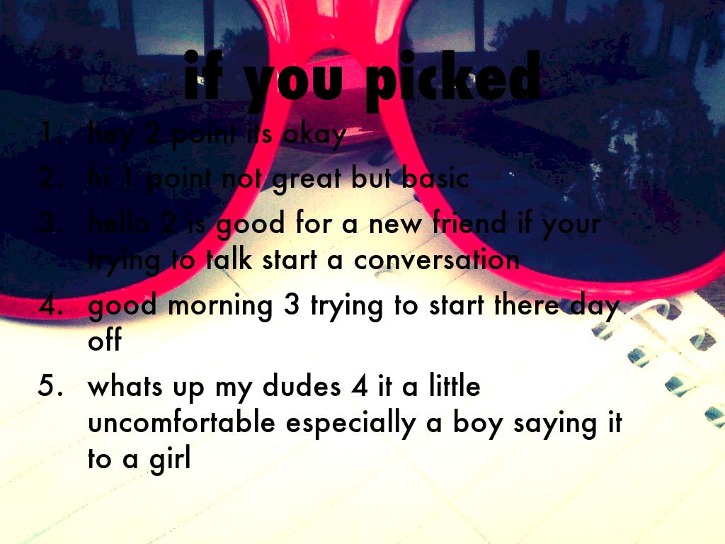 • hello 2 is good for a new friend if your trying to talk start a conversation