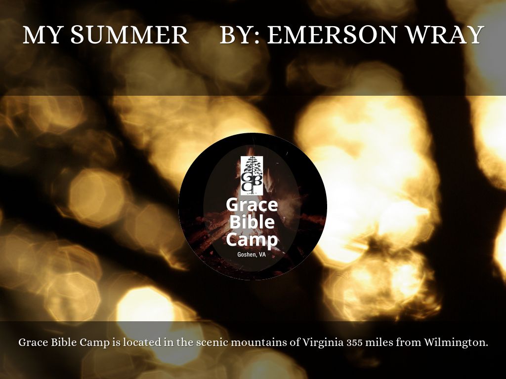 Grace Bible Camp is located in the scenic mountains of Virginia 355 miles from Wilmington.