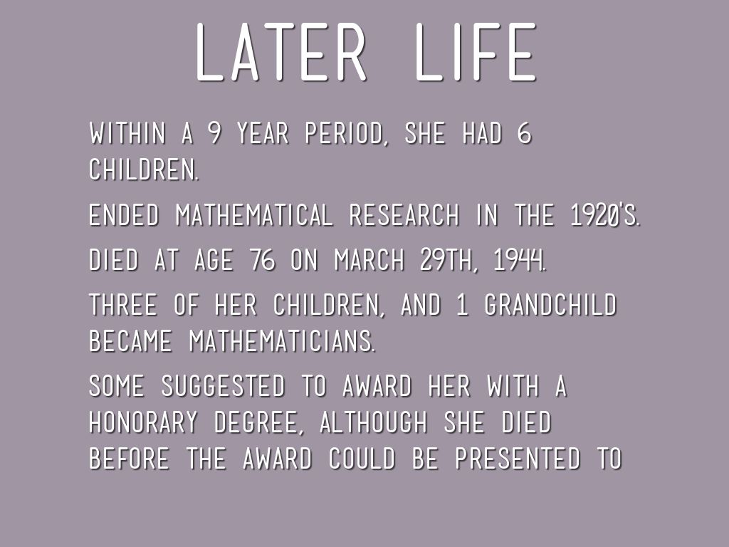 Three of her children, and 1 grandchild became mathematicians.