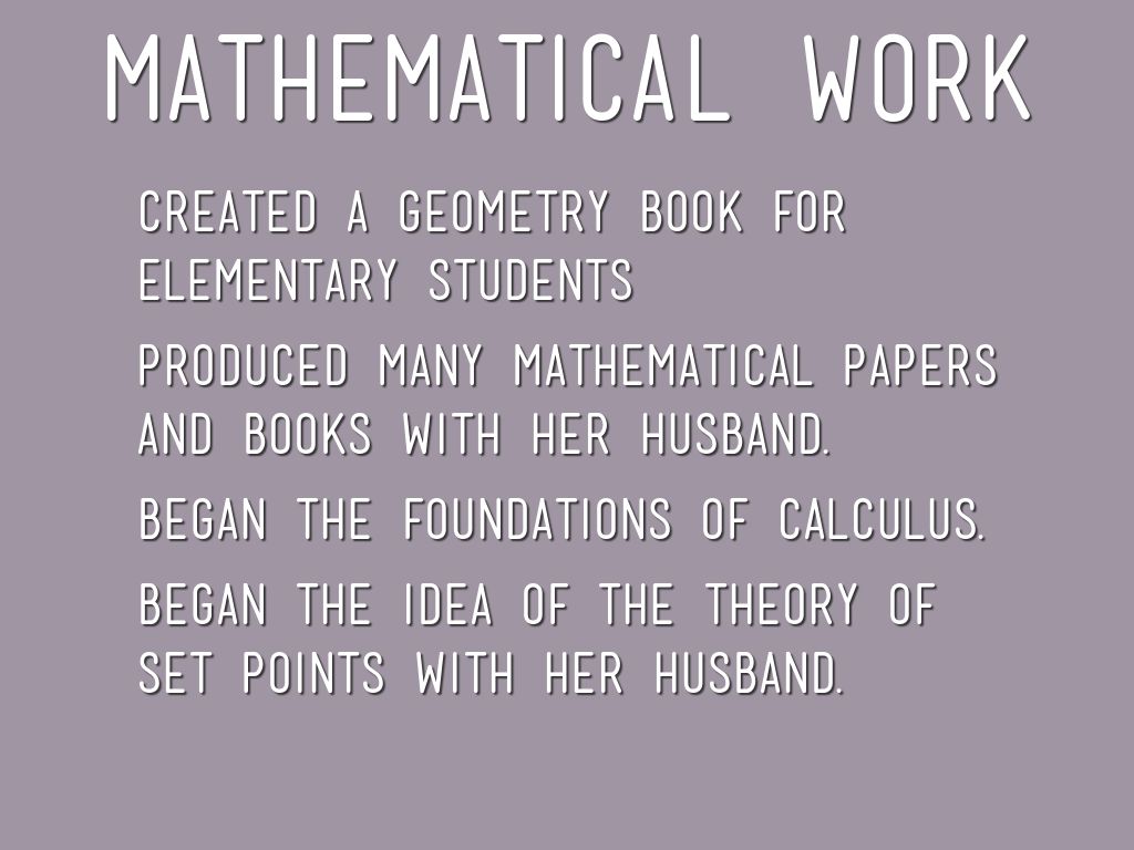 Produced many mathematical papers and books with her husband.
