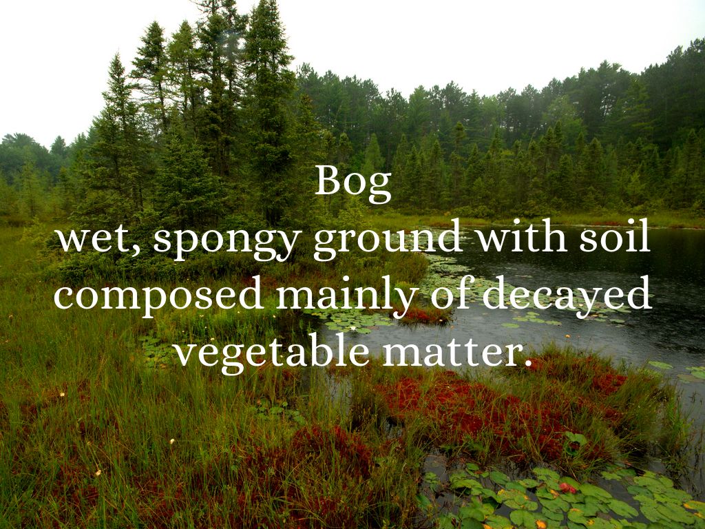 wet, spongy ground with soil composed mainly of decayed vegetable matter.