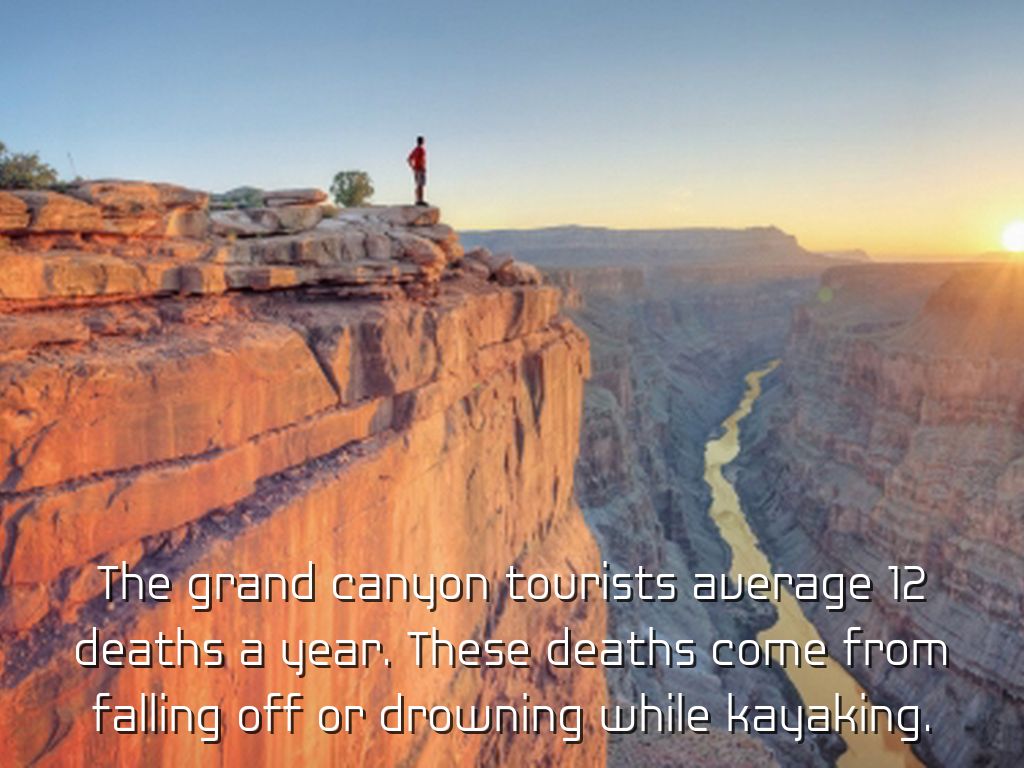 The grand canyon tourists average 12 deaths a year. These deaths come from falling off or drowning while kayaking.