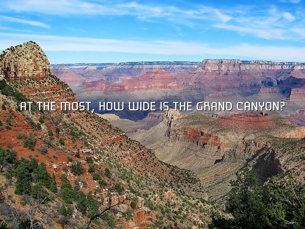 AT THE MOST, HOW WIDE IS THE GRAND CANYON?