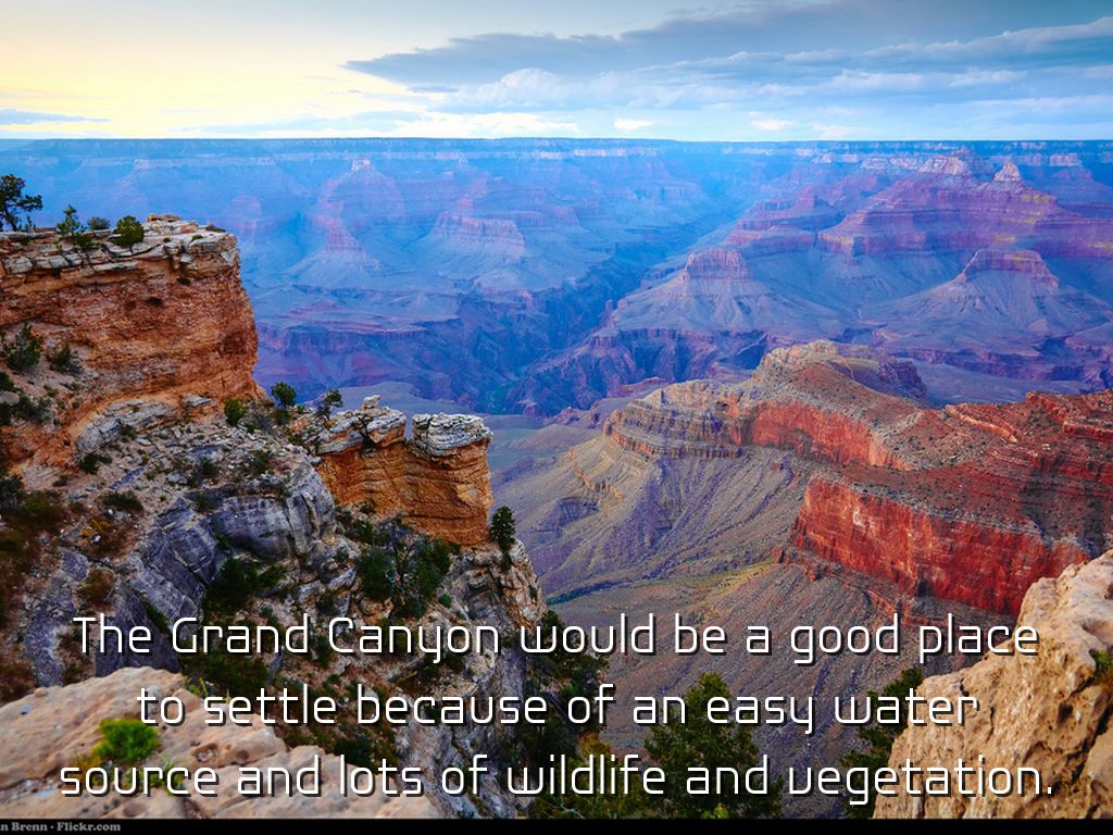 The Grand Canyon would be a good place to settle because of an easy water source and lots of wildlife and vegetation.