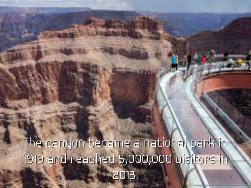 The canyon became a national park in 1919 and reached 5,000,000 visitors in 2013.