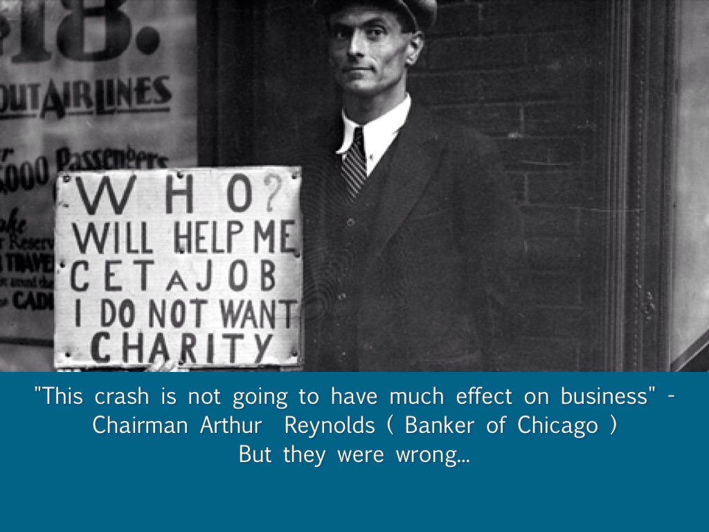"This crash is not going to have much effect on business" - Chairman Arthur Reynolds ( Banker of Chicago )
