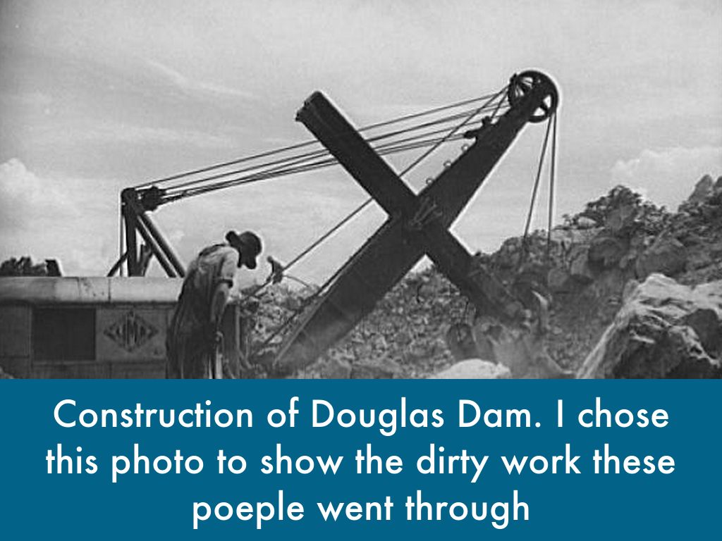 Construction of Douglas Dam. I chose this photo to show the dirty work these poeple went through