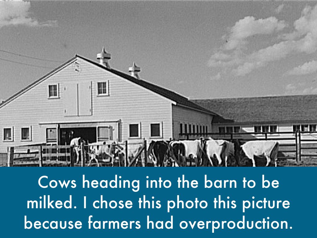 Cows heading into the barn to be milked. I chose this photo this picture because farmers had overproduction.