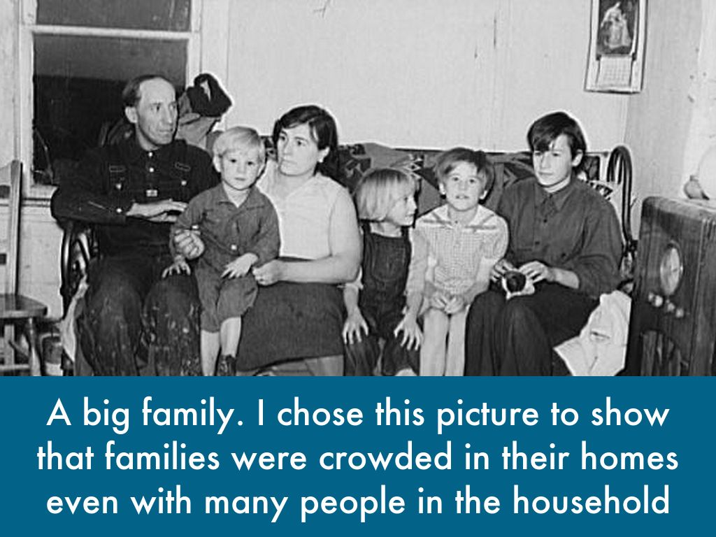 A big family. I chose this picture to show that families were crowded in their homes even with many people in the household