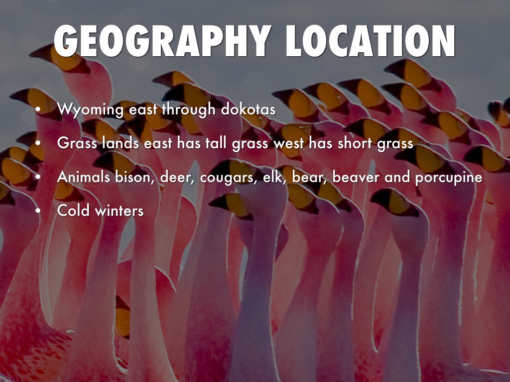 Animals bison, deer, cougars, elk, bear, beaver and porcupine