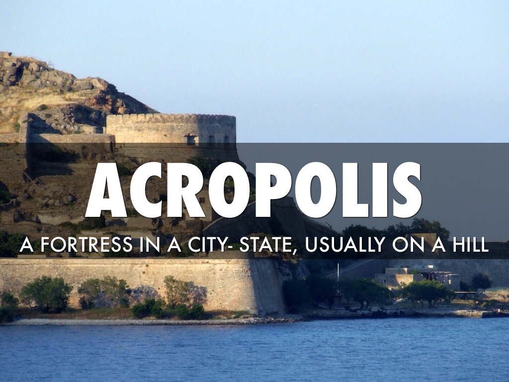 A FORTRESS IN A CITY- STATE, USUALLY ON A HILL