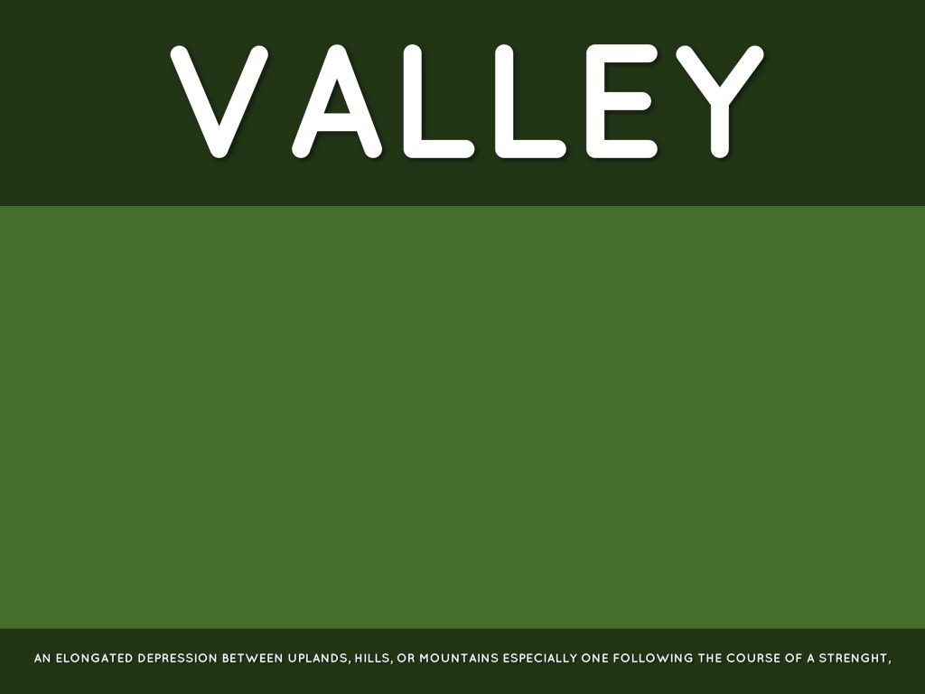 AN ELONGATED DEPRESSION BETWEEN UPLANDS, HILLS, OR MOUNTAINS ESPECIALLY ONE FOLLOWING THE COURSE OF A STRENGHT,