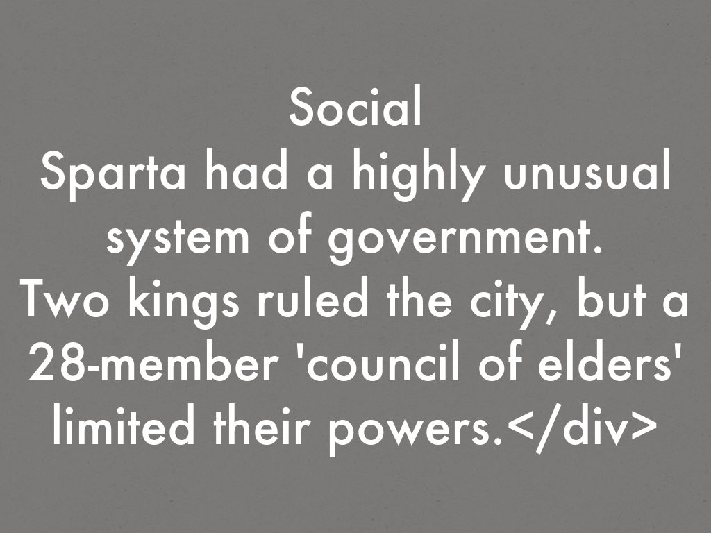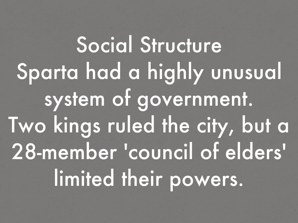 Two kings ruled the city, but a 28-member 'council of elders' limited their powers.