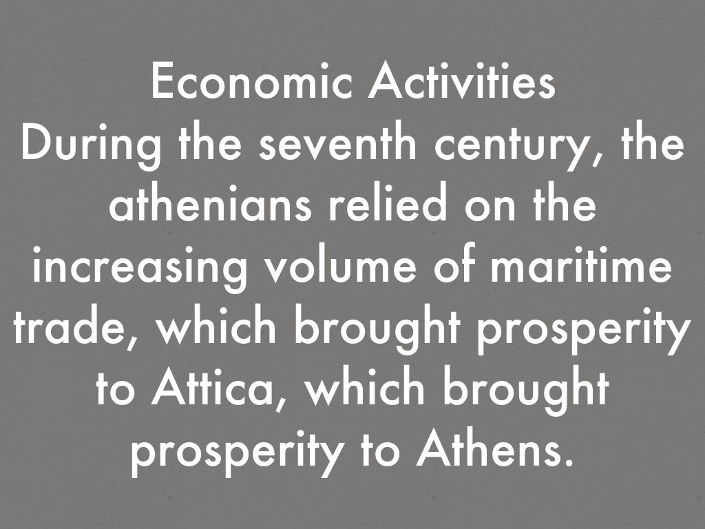 During the seventh century, the athenians relied on the increasing volume of maritime trade, which brought prosperity to Attica, which brought prosperity to Athens.