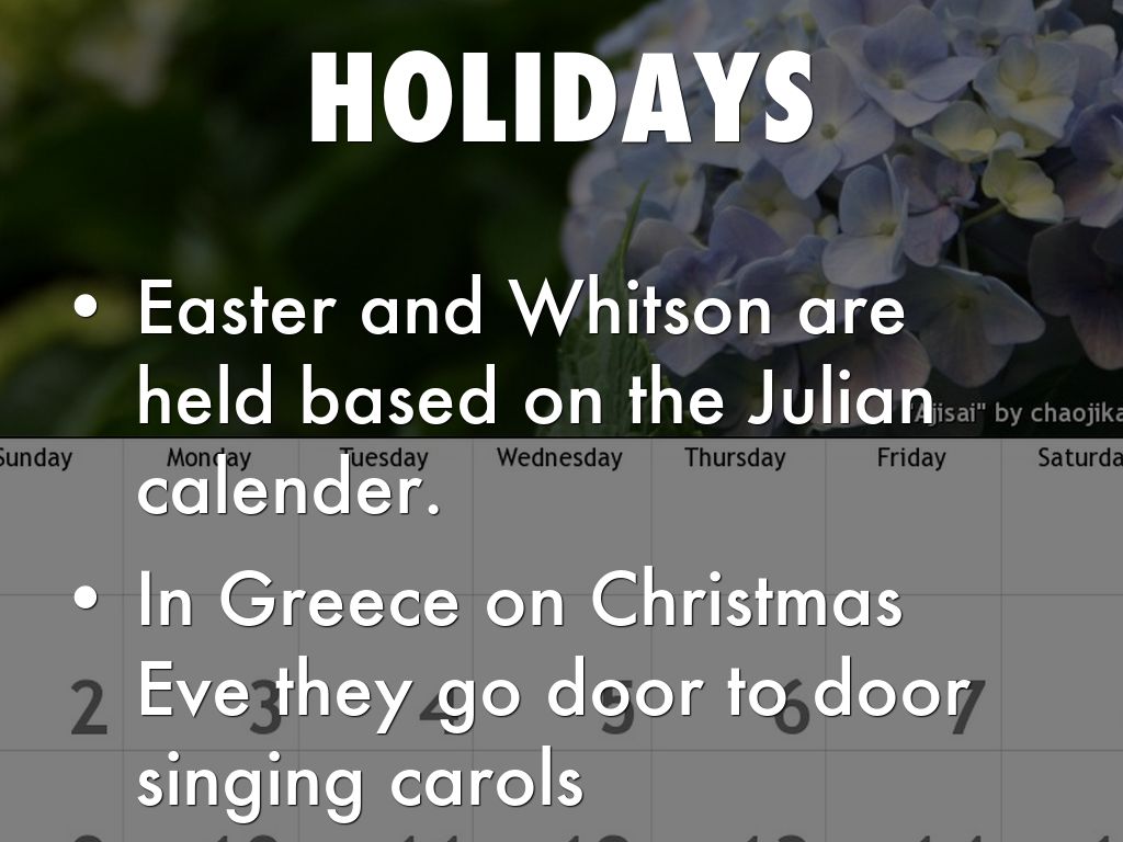 Easter and Whitson are held based on the Julian calender.