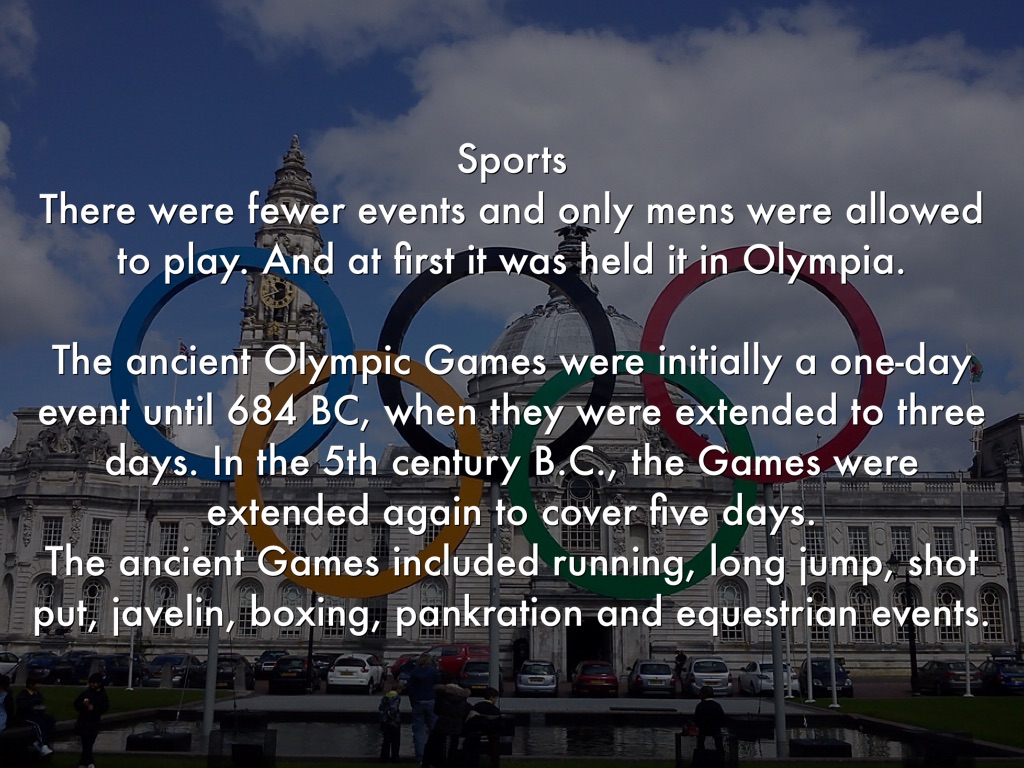 There were fewer events and only mens were allowed to play. And at first it was held it in Olympia.