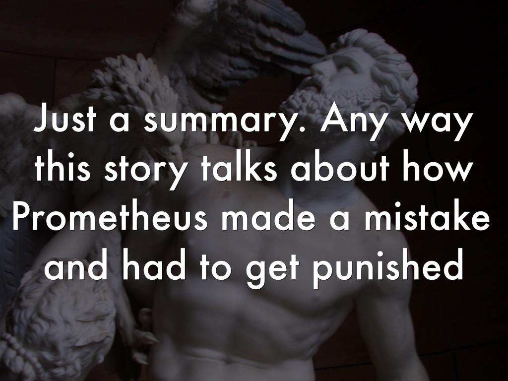 Just a summary. Any way this story talks about how Prometheus made a mistake and had to get punished