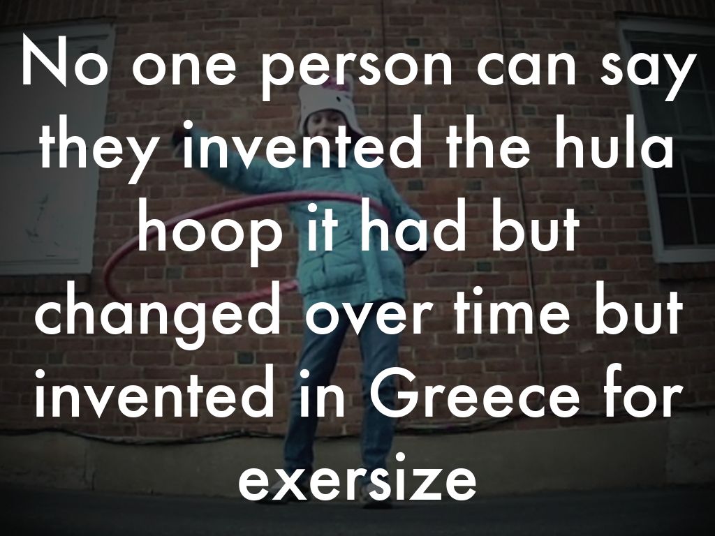 No one person can say they invented the hula hoop it had but changed over time but invented in Greece for exersize