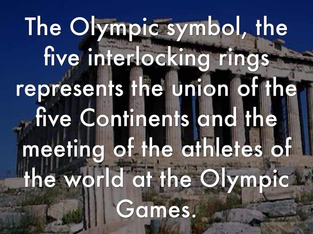 The Olympic symbol, the five interlocking rings represents the union of the five Continents and the meeting of the athletes of the world at the Olympic Games.