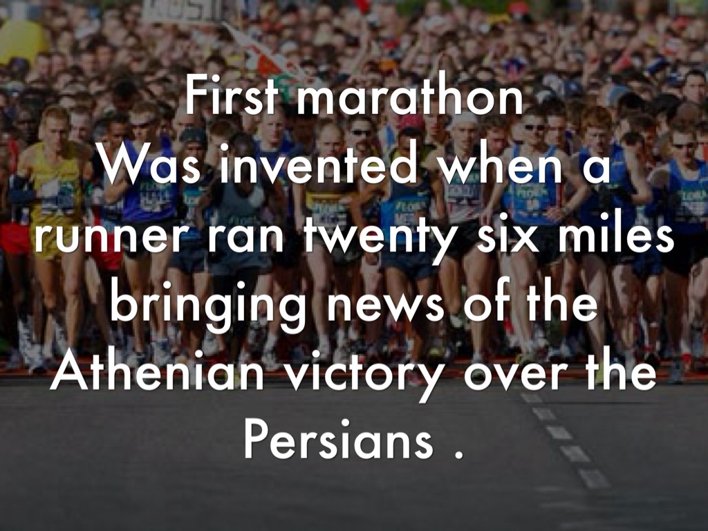 Was invented when a runner ran twenty six miles bringing news of the Athenian victory over the Persians .