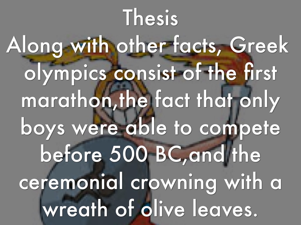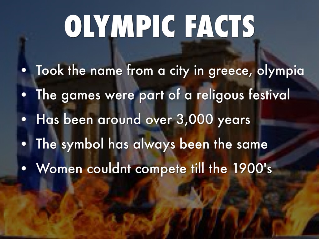 Along with other facts, Greek olympics consist of the first marathon,the fact that only boys were able to compete before 500 BC,and the ceremonial crowning with a wreath of olive leaves.