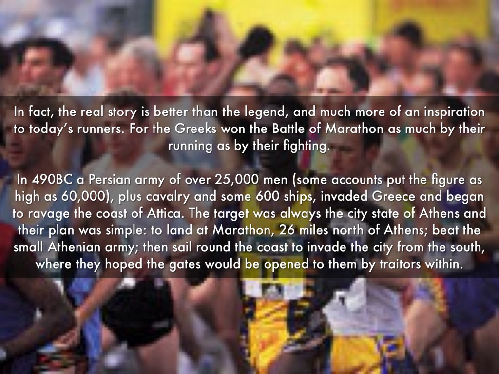 In fact, the real story is better than the legend, and much more of an inspiration to today’s runners. For the Greeks won the Battle of Marathon as much by their running as by their fighting.