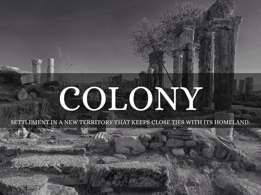 SETTLEMENT IN A NEW TERRITORY THAT KEEPS CLOSE TIES WITH ITS HOMELAND.
