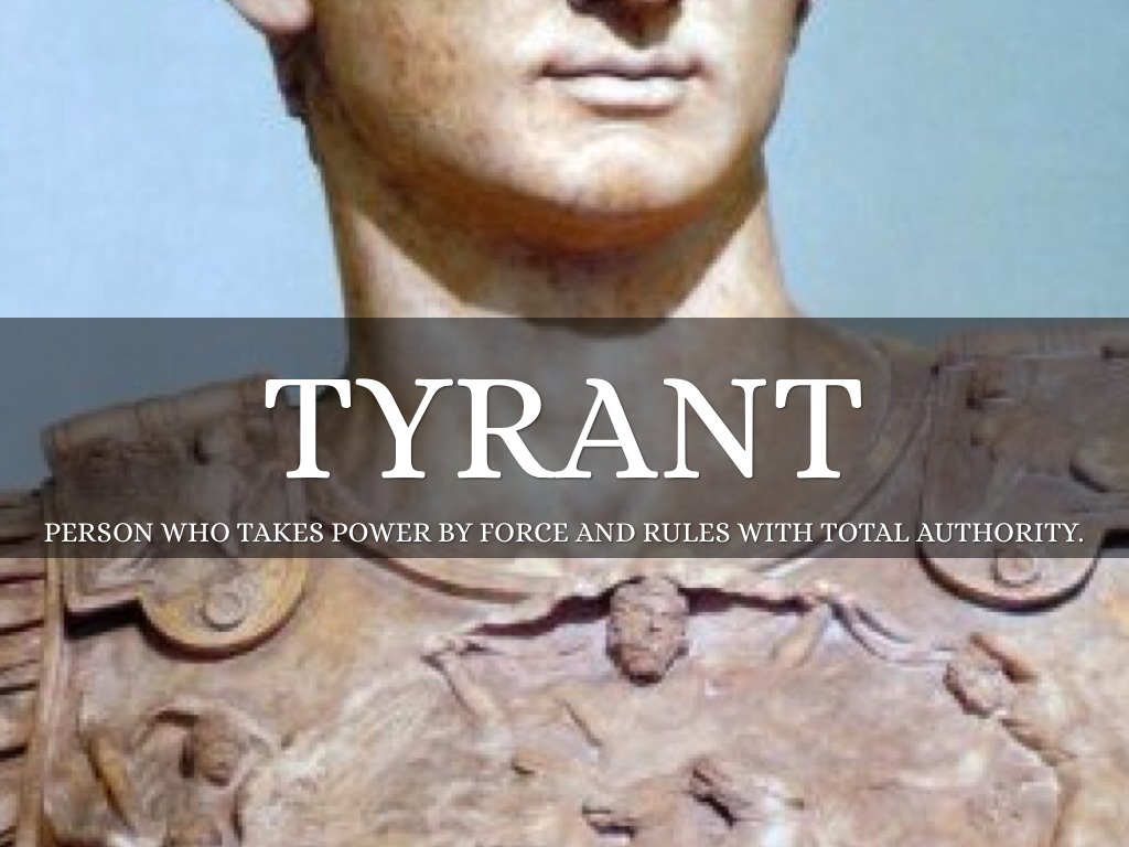 PERSON WHO TAKES POWER BY FORCE AND RULES WITH TOTAL AUTHORITY.