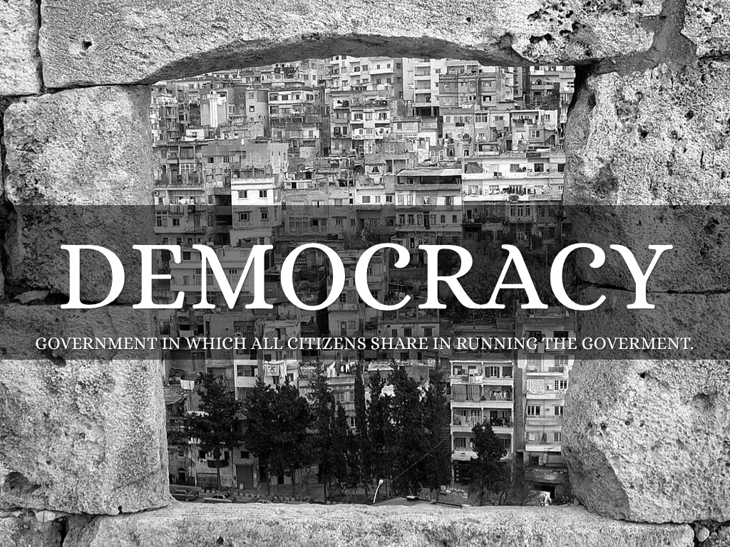 GOVERNMENT IN WHICH ALL CITIZENS SHARE IN RUNNING THE GOVERMENT.
