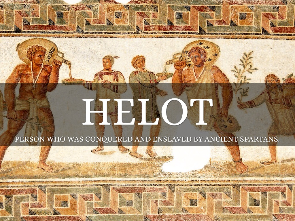 PERSON WHO WAS CONQUERED AND ENSLAVED BY ANCIENT SPARTANS.
