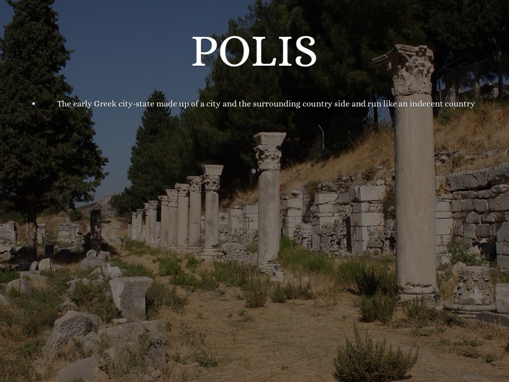 The early Greek city-state made up of a city and the surrounding country side and run like an indecent country