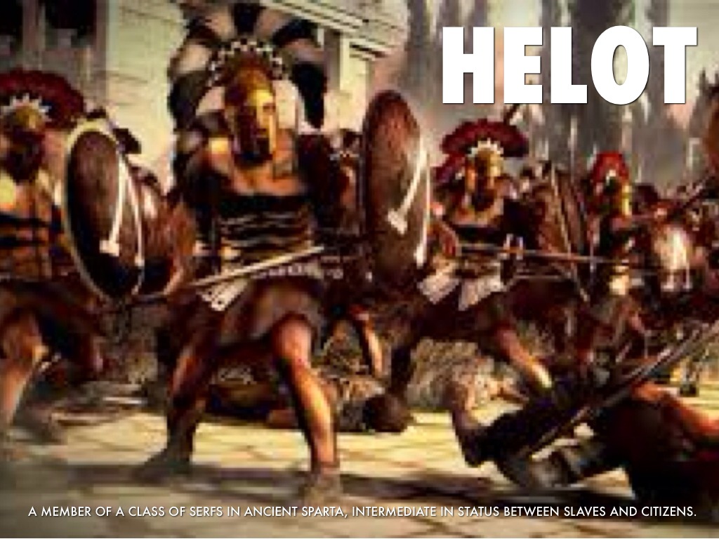 a member of a class of serfs in ancient Sparta, intermediate in status between slaves and citizens.