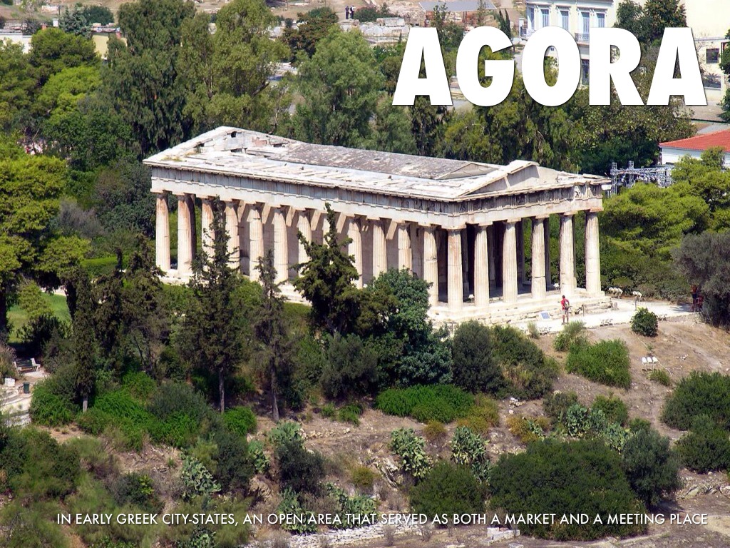 in early Greek city-states, an open area that served as both a market and a meeting place