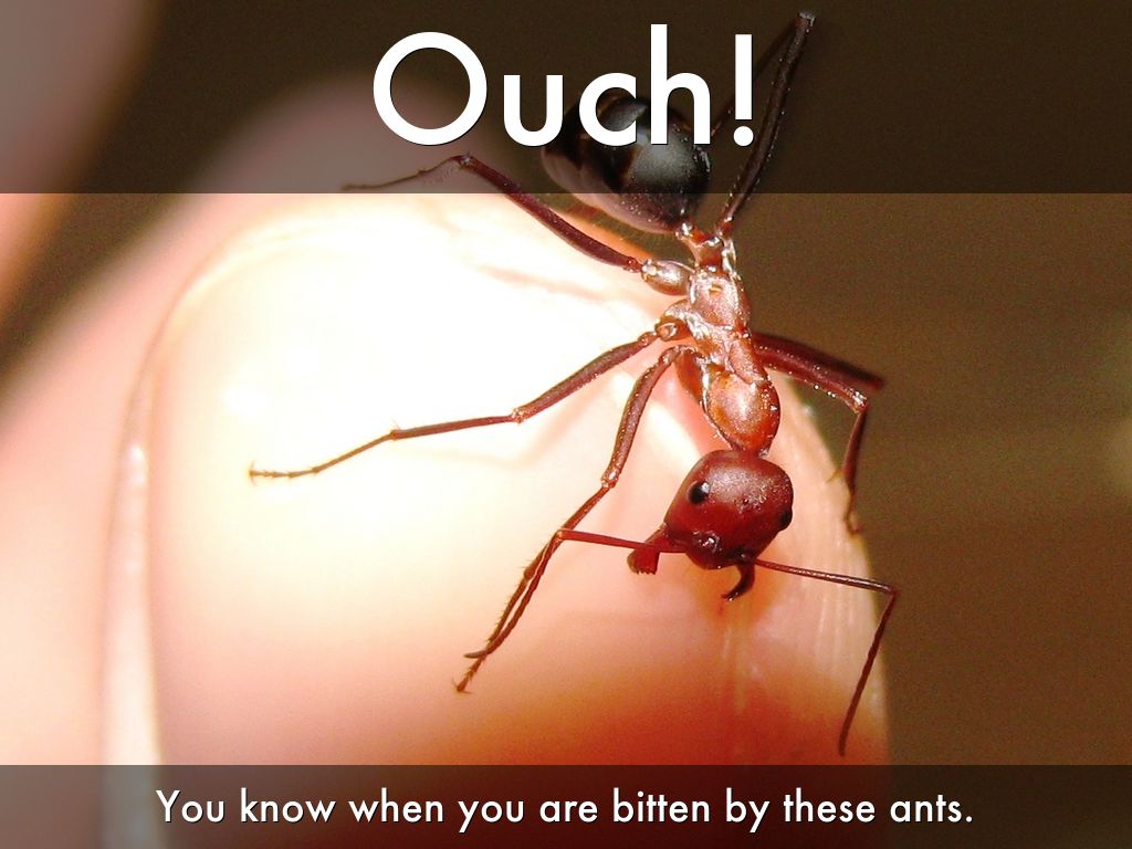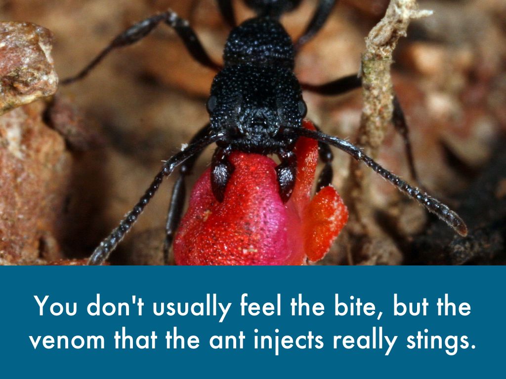 You don't usually feel the bite, but the venom that the ant injects really stings.