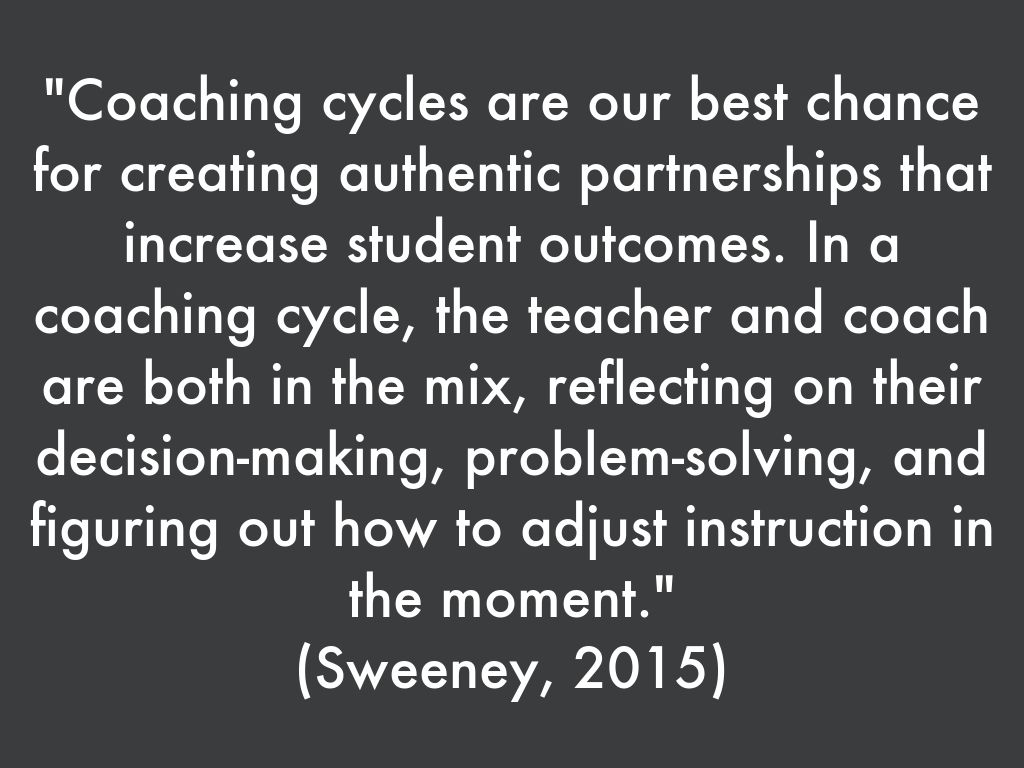 "Coaching cycles are our best chance for creating authentic partnerships that increase student outcomes. In a coaching cycle, the teacher and coach are both in the mix, reflecting on their decision-making, problem-solving, and figuring out how to adjust instruction in the moment."