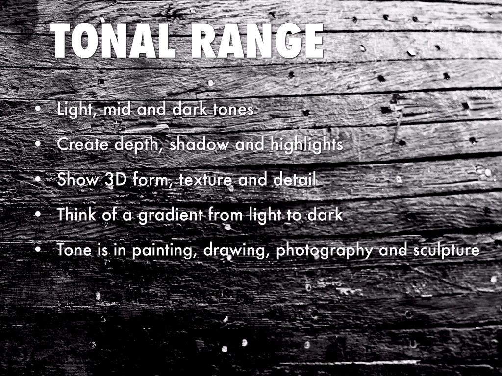 Tone is in painting, drawing, photography and sculpture