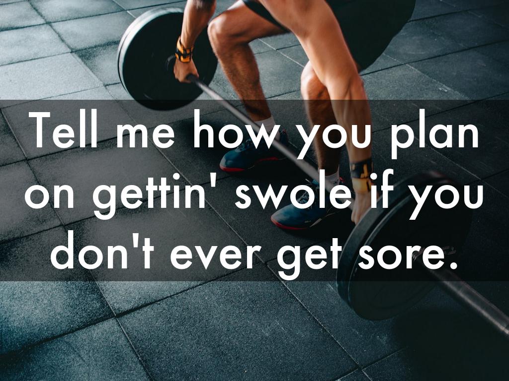 Tell me how you plan on gettin' swole if you don't ever get sore.