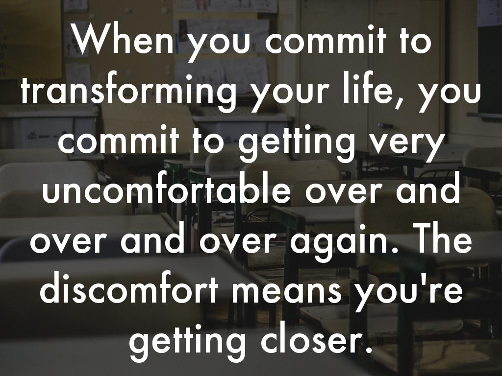 When you commit to transforming your life, you commit to getting very uncomfortable over and over and over again. The discomfort means you're getting closer.