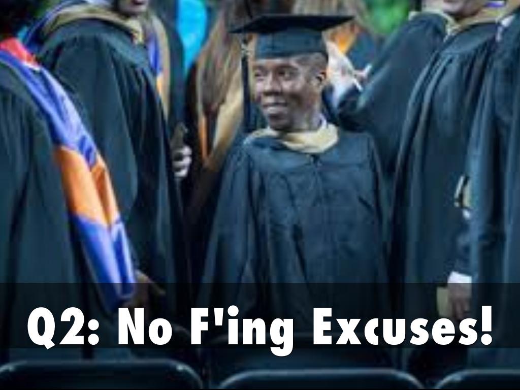 "An excuse is simply an obstacle that you've decided has power over you. If you're serious about changing your life, you'll find a way past your obstacle. If you're kind of serious about changing your life, you'll find an excuse."