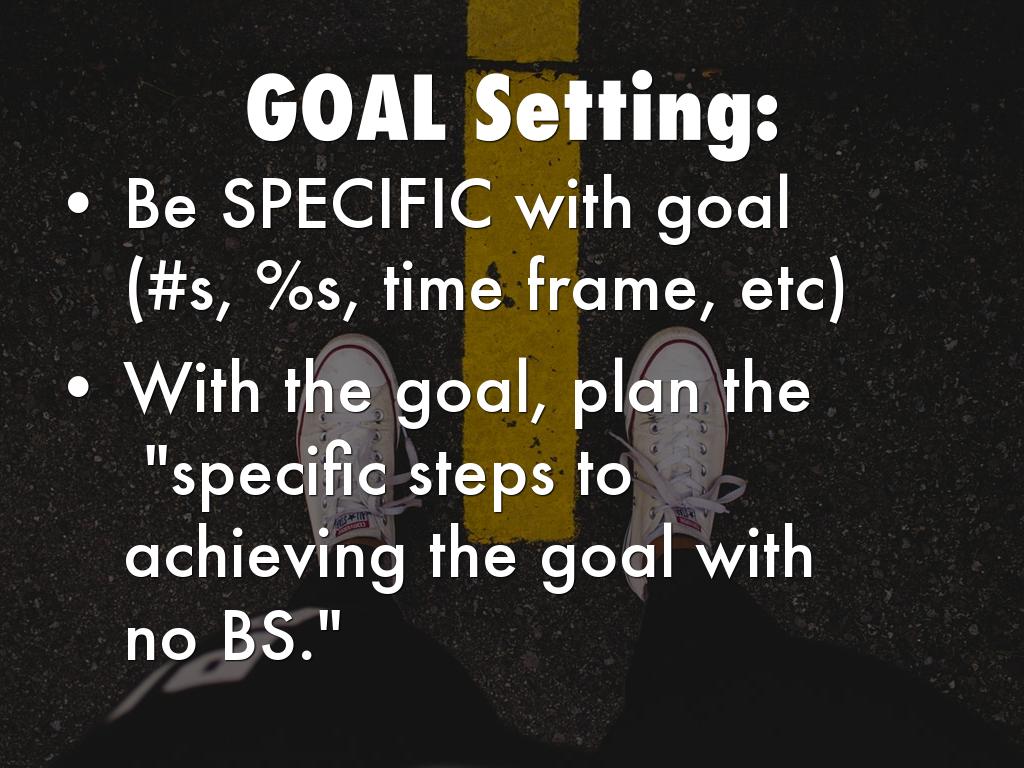 - With the goal, plan the "specific steps to achieving the goal with no BS."