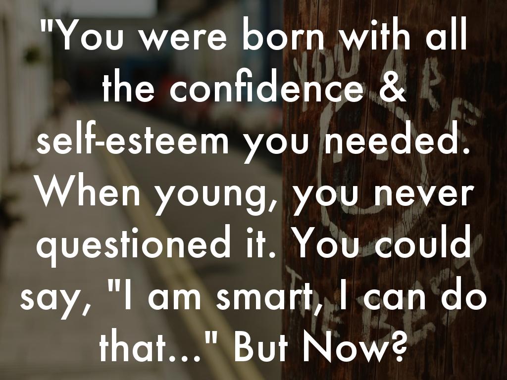 "You were born with all the confidence & self-esteem you needed. When young, you never questioned it. You could say, "I am smart, I can do that..." But Now?