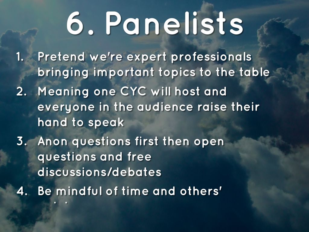 Meaning one CYC will host and everyone in the audience raise their hand to speak