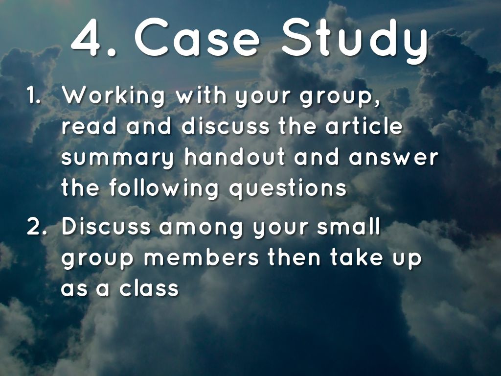 Working with your group, read and discuss the article summary handout and answer the following questions