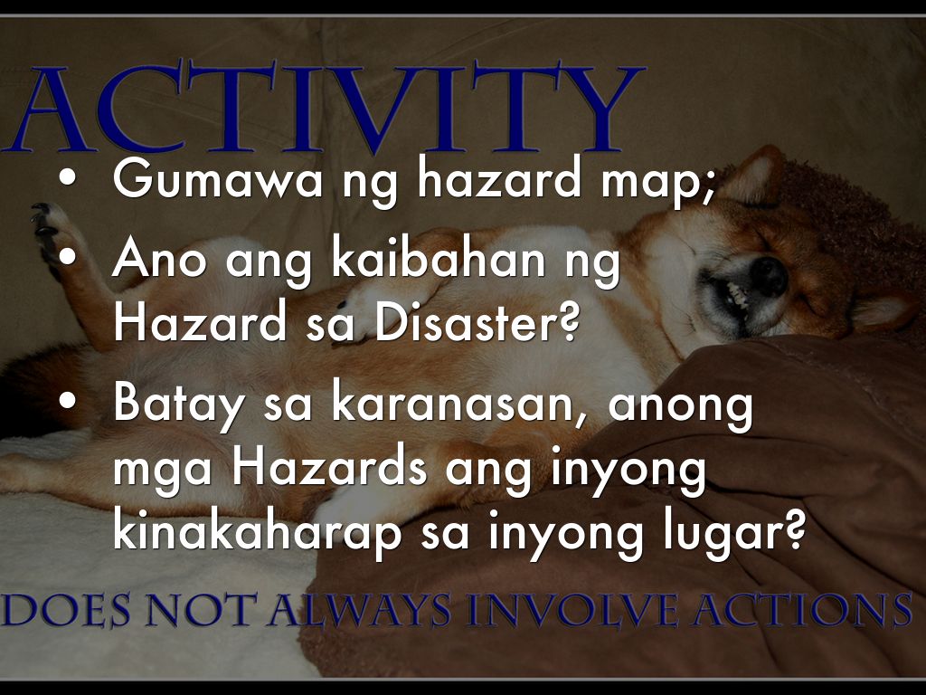 Ano ang hazard? Anyare? Bagyo? Magbigay ng mga bagyong naranasan na ninyo? Anong ginawa nyo?