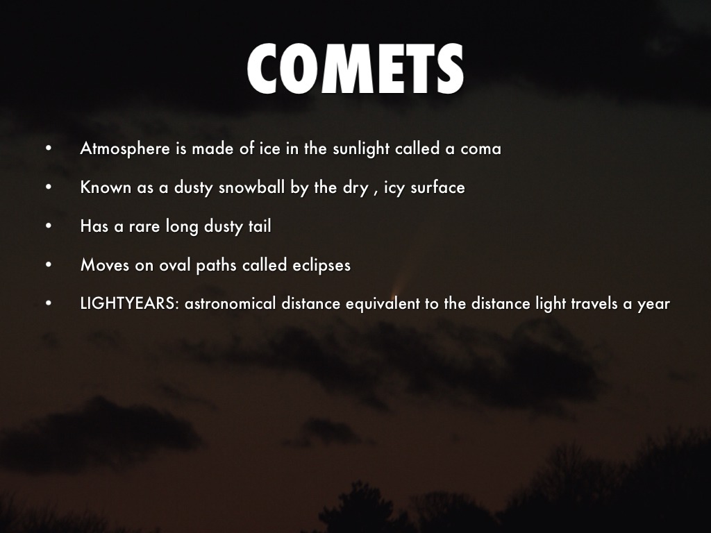 LIGHTYEARS: astronomical distance equivalent to the distance light travels a year