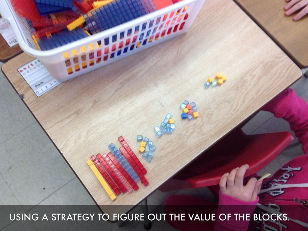 USING A STRATEGY TO FIGURE OUT THE VALUE OF THE BLOCKS.