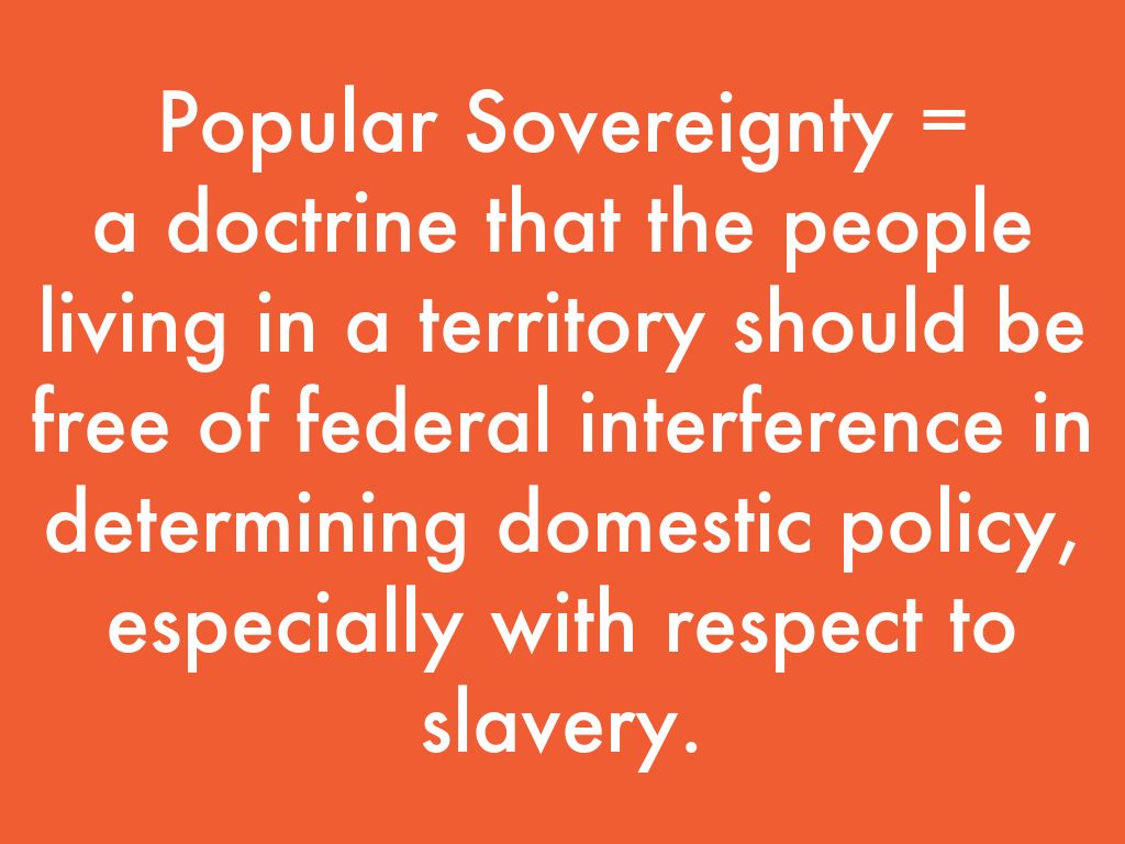 a doctrine that the people living in a territory should be free of federal interference in determining domestic policy, especially with respect to slavery.