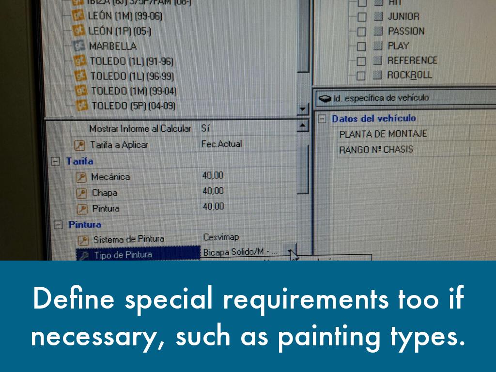 Afterwards you will be able to define what special characteristics the car have, due to each custom model have its own particular pieces