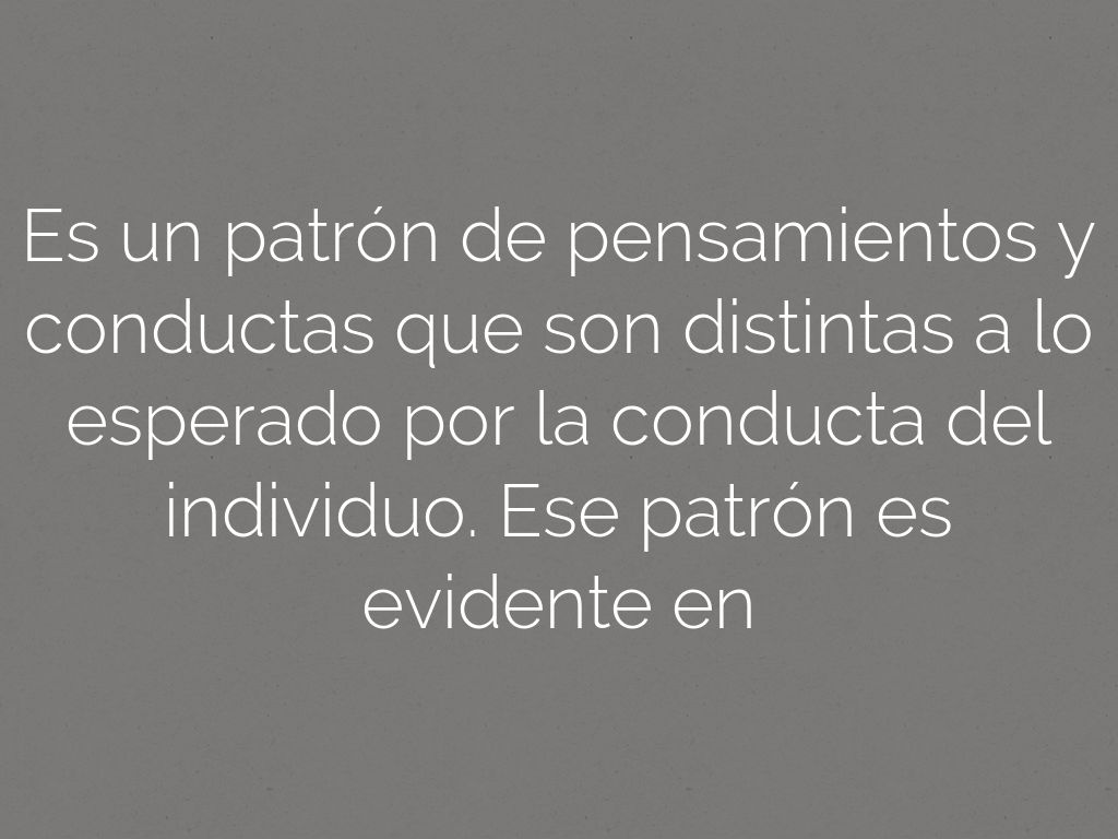 Es un patrón de pensamientos y conductas que son distintas a lo esperado por la conducta del individuo. Ese patrón es evidente en dos o más de las siguientes áreas